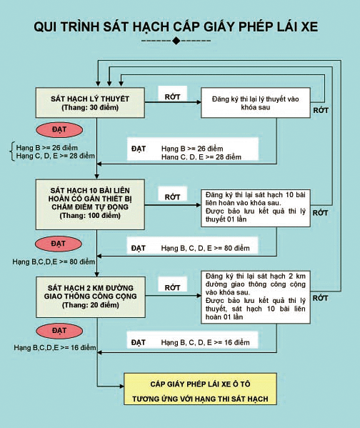 * Các bước sau khi thi đậu: Ngay sau khi có kết quả đậu cả hai phần thi, bạn sẽ được hướng dẫn hoàn tất các thủ tục hành chính cuối cùng tại trung tâm sát hạch hoặc Sở Giao thông vận tải. Thường là ký xác nhận vào biên bản sát hạch, nộp các giấy tờ cần thiết còn thiếu (nếu có).