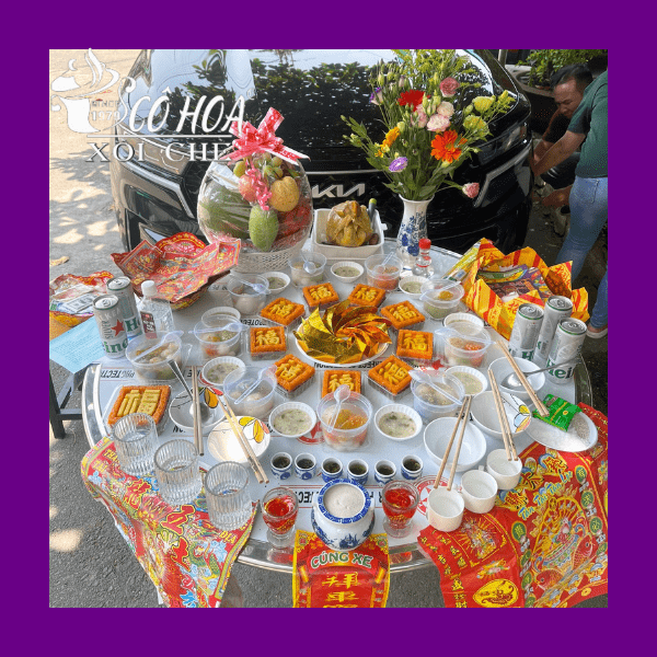 Xây dựng mâm lễ vật cúng xe đầy đủ và thịnh soạn
